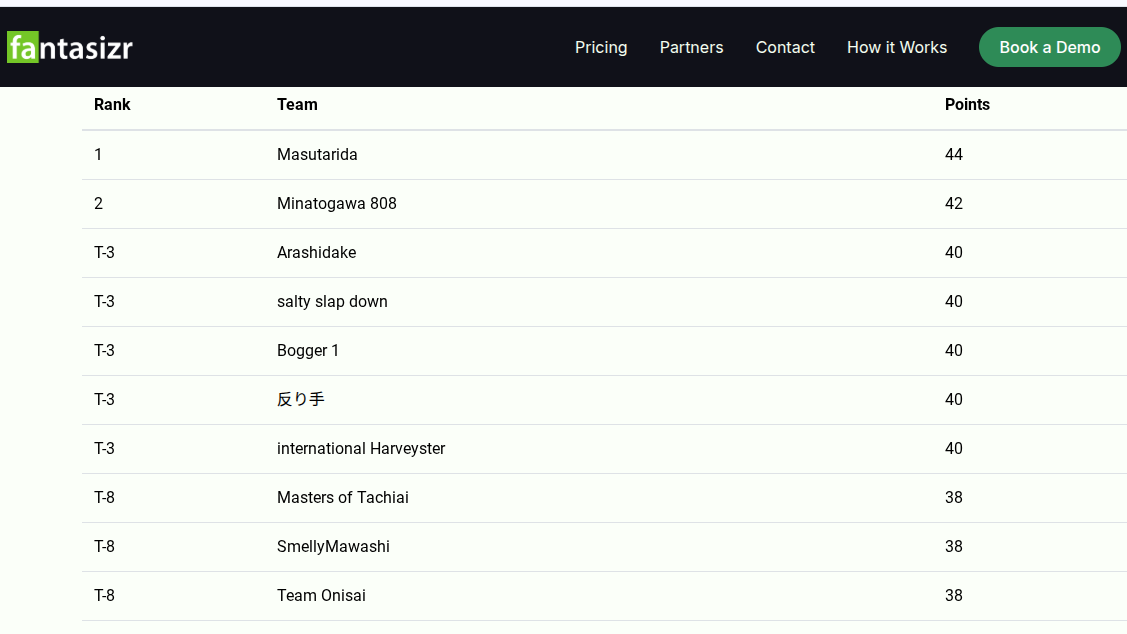 Scores from Fantasizr
