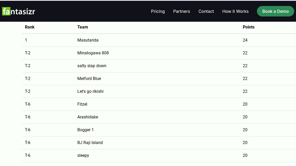 Scores from Fantasizr