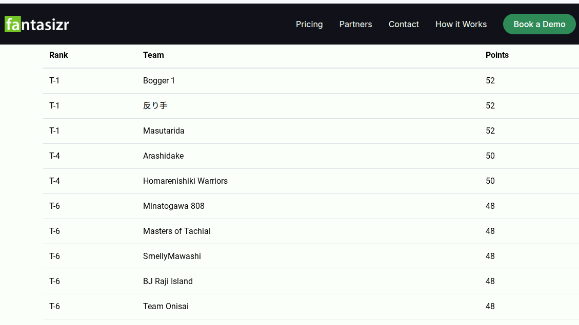 Scores from Fantasizr